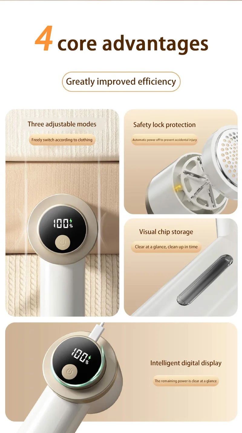 ✅ Large Capacity Dust Tank – Collects fuzz effortlessly; easy to clean with one-click opening.