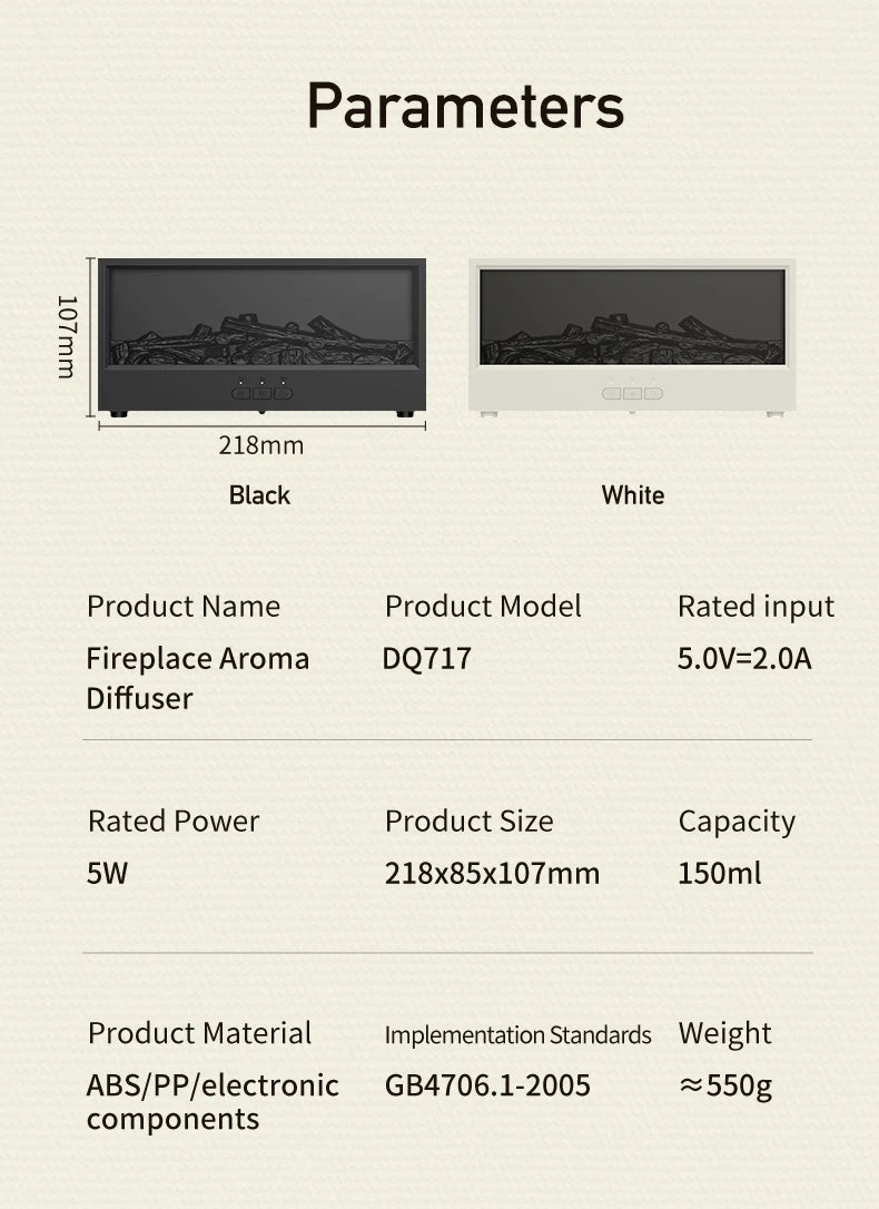 1. Multi-Functional 4-in-1 Device: The fireplace flame humidifier combines humidification, fragrance diffusion, night light, and ambient lighting in one. With a 150ml capacity, simply add 3-5 drops of essential oil to fill your room with a pleasant scent, increase air humidity, and provide a warm, comforting light to accompany your sleep.