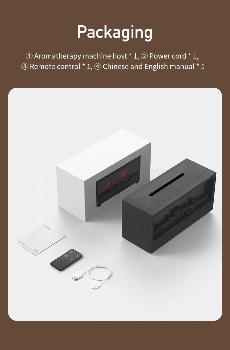 Aroma Air Humidifier Remote Control Simulation Fireplace Flame Humidifier Colorful Light Desktop Aromatherapy Diffuser Mute Work